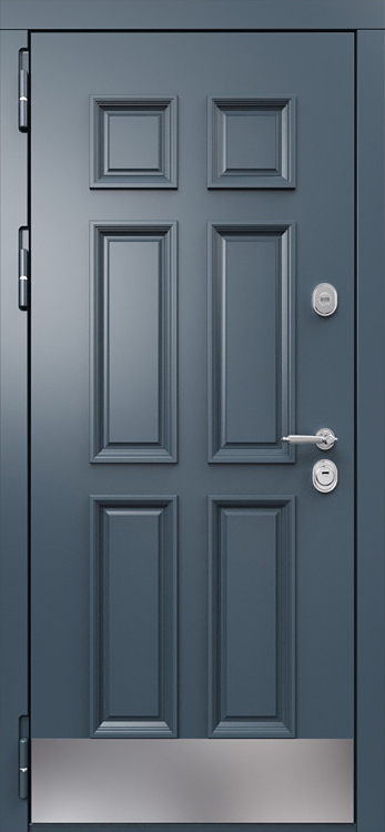 Дверь стальная МДФ эмаль №563 — это удачное сочетание надежной металлической основы и аккуратной декоративной отделки. Каркас из профильной трубы и стальной лист толщиной 2 мм обеспечивают прочность и устойчивость к взлому, а ребра жесткости повышают общий ресурс эксплуатации. Важной особенностью модели является наличие терморазрыва в коробке и полотне: конструкция эффективно препятствует промерзанию зимой, исключает появление конденсата и сохраняет тепло в помещении. Панели МДФ с ПВХ-покрытием, использованные с обеих сторон, защищены от влаги и мелких механических повреждений, благодаря чему дверь долго сохраняет привлекательный внешний вид. Два контура резинового уплотнителя дополнительно усиливают защиту от сквозняков и уличного шума. Такая дверь органично подходит для частных домов, квартир и офисов, сочетая в себе надежность стали и практичность современной отделки. Дверь стальная МДФ эмаль №563 от производителя: быстрое изготовление и монтаж в Красноармейске, индивидуальные размеры, широкий выбор материалов и фурнитуры, официальная гарантия до 10 лет.