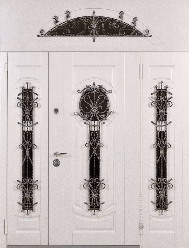 Входная дверь с кованой ручкой и фрамугой №6 представляет собой элегантное и надежное решение для тех, кто ценит не только безопасность, но и стиль. Эта модель идеально подойдет для оформления парадных входов в дома и офисы. Внешняя отделка из плиты МДФ придает двери современный и чистый вид, который сохраняется долго благодаря стойкости к внешним воздействиям. Благодаря профильной трубе с толщиной металла 2 мм и ребрам жесткости, конструкция двери гарантирует прочность и долговечность. Дополнительный элемент — кованая ручка, которая добавляет изысканности и подчеркивает высокий класс изделия. Стандартная комплектация не включает шумо- и теплоизоляцию, однако она может быть установлена по желанию. Резиновый уплотнитель с двумя контурами обеспечит хорошую герметичность, защищая от ветра и пыли. Подходит для установки как в частных домах, так и в офисах, привлекая внимание своим необычным и стильным дизайном. Входная дверь с кованой ручкой и фрамугой №6 от производителя: быстрое изготовление и монтаж в Красноармейске, индивидуальные размеры, широкий выбор материалов и фурнитуры, официальная гарантия до 10 лет.