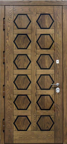 Глубокий оттенок венге всегда выглядит благородно и современно, а декоративная панель придаёт полотну завершённый стильный образ. Дверь МДФ цвета венге с внешней декоративной панелью №538 подходит для установки как в частных домах, так и в квартирах или офисах, где ценят сочетание надёжности и эстетики. Плиты МДФ отличаются прочностью, стойкостью к мелким механическим повреждениям и долго сохраняют первоначальный вид без потери насыщенности цвета. Конструкция выполнена на основе стального каркаса с листом металла толщиной 2 мм и рёбрами жёсткости, что обеспечивает высокий уровень прочности. Два контура уплотнения повышают комфорт эксплуатации, защищая от сквозняков. Дополнительно дверь можно оснастить шумо- и теплоизоляцией, зеркалом, стеклопакетом или коваными элементами, сделав её не только практичной, но и индивидуальной деталью интерьера. Дверь МДФ цвета венге с внешней декоративной панелью №538 от производителя: быстрое изготовление и монтаж в Красноармейске, индивидуальные размеры, широкий выбор материалов и фурнитуры, официальная гарантия до 10 лет.