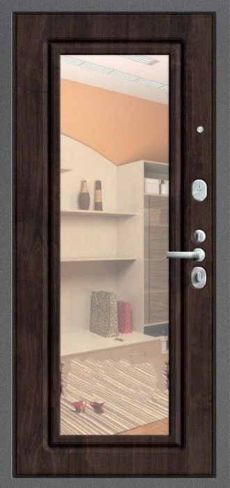 Каркас из профильной трубы и стальной лист толщиной 2 мм обеспечивают прочность конструкции и устойчивость к взлому, а два контура уплотнителей защищают помещение от сквозняков и уличного шума. Входная дверь в квартиру с зеркалом №10 выделяется сочетанием практичного молоткового напыления снаружи и аккуратной плиты МДФ внутри. Такое покрытие не боится механических повреждений и перепадов температуры, долго сохраняя первоначальный вид. Зеркало на внутренней стороне делает прихожую светлее и визуально просторнее, заменяя полноценное настенное. Дополнительные блокираторы и система ребер жёсткости усиливают надежность. Возможность изготовления в любых размерах позволяет адаптировать модель под особенности квартиры, офиса или частного дома, сохранив баланс между эстетикой и безопасностью. Входная дверь в квартиру с зеркалом №10 от производителя: быстрое изготовление и монтаж в Красноармейске, индивидуальные размеры, широкий выбор материалов и фурнитуры, официальная гарантия до 10 лет.