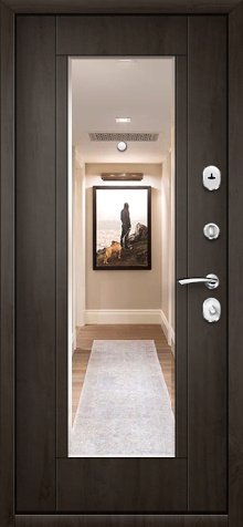 Надёжность металлической двери всегда в приоритете, но когда она получает дополнительное оснащение, результат становится особенно удобным. Входная дверь с зеркалом №78 удачно объединяет прочность конструкции и практичность деталей: массивный каркас из профильной трубы, лист стали толщиной 2 мм и усиленные рёбра жёсткости формируют крепкий защитный барьер, а зеркало на внутренней стороне делает её частью интерьера, экономя место и добавляя визуального простора. Снаружи используется молотковое напыление, устойчивое к царапинам и погодным перепадам, благодаря чему дверь подходит как для квартиры, так и для частного дома. Внутренняя отделка выполнена плитой МДФ, которая выглядит стильно и сохраняет аккуратность даже при активной эксплуатации. Два контура уплотнения помогают защитить помещение от сквозняков, а при необходимости конструкцию можно дополнить шумоизоляцией, современными замками и даже видеодомофоном. Входная дверь с зеркалом №78 от производителя: быстрое изготовление и монтаж в Красноармейске, индивидуальные размеры, широкий выбор материалов и фурнитуры, официальная гарантия до 10 лет.