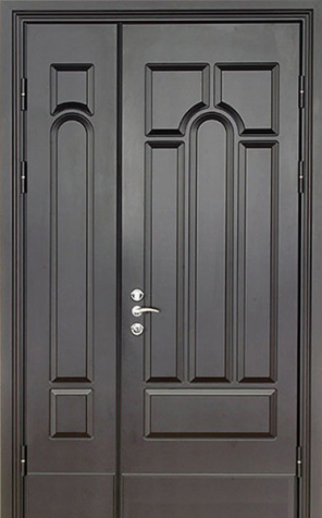 Базовая схема — активная и пассивная створки в усиленной коробке. Пассивная фиксируется верхним и нижним ригелями или скрытыми шпингалетами; это даёт жёсткость и исключает самопроизвольное открывание. Замковая группа подбирается под сценарии: основной замок + вспомогательный, ручки, броненакладки, глазок или видеоглазок.