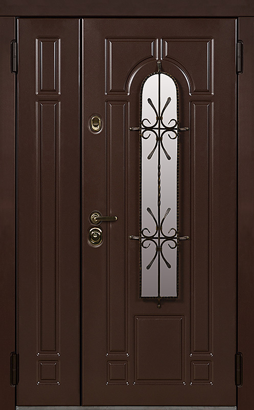 Эта металлическая двухстворчатая дверь с арочным стеклопакетом №15 представляет собой идеальный баланс между эстетикой и прочностью. Арочное стекло добавляет в её дизайн утончённость, а ковка в декоре придаёт изысканный, но в то же время крепкий и надёжный вид. Плита МДФ, используемая как для внешней, так и для внутренней отделки, не только сохраняет прекрасный внешний вид, но и устойчива к механическим повреждениям. Металлическая двухстворчатая дверь с арочным стеклопакетом №15 от производителя: быстрое изготовление и монтаж в Красноармейске, индивидуальные размеры, широкий выбор материалов и фурнитуры, официальная гарантия до 10 лет.
