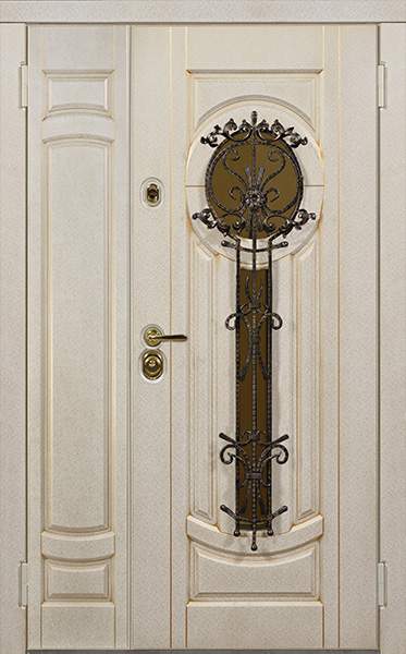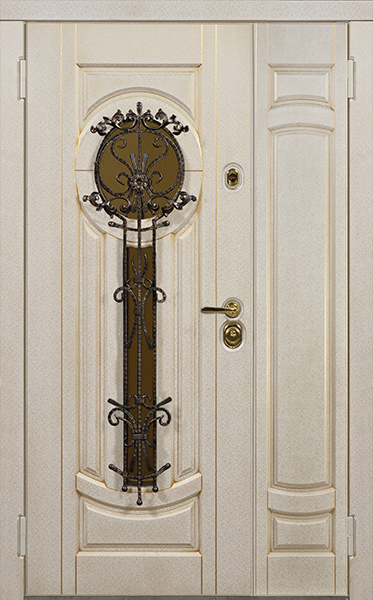 Двухстворчатая парадная дверь с ковкой и стеклом белая №30 — это сочетание красоты и надёжности. Конструкция из профильной трубы 50х25 мм и металлического листа толщиной 2 мм обеспечивает долговечность и стойкость к внешним воздействиям. Элементы ковки придают двери изысканный вид, а стеклопакет позволяет создать атмосферу лёгкости и прозрачности. Внешняя и внутренняя отделка выполнены из плиты МДФ, что делает дверь не только привлекательной, но и устойчивой к механическим повреждениям. Для дополнительной герметичности используются уплотнители с двумя контурами, а блокираторы обеспечат безопасность. Вариативность размеров и возможность добавления дополнительных опций, таких как шумо- и теплоизоляция, делают эту модель универсальной для установки в любом интерьере. Двухстворчатая парадная дверь с ковкой и стеклом белая №30 от производителя: быстрое изготовление и монтаж в Красноармейске, индивидуальные размеры, широкий выбор материалов и фурнитуры, официальная гарантия до 10 лет.