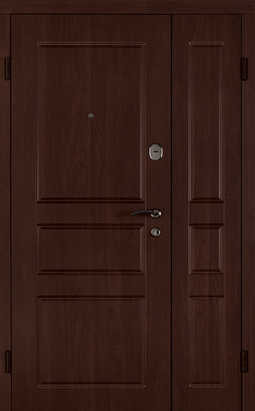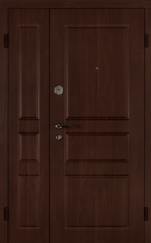 Коричневая входная полуторная дверь с филенчатой створкой №4 – это надежное и стильное решение для вашего дома или офиса. Внешняя и внутренняя отделка из МДФ с ПВХ обеспечивает долговечность и устойчивость к повреждениям, сохраняя при этом элегантный внешний вид. Прочные материалы конструкции, такие как профильная труба 50х25 мм и лист металла толщиной 2 мм, гарантируют стабильность и безопасность. Ребра жесткости из профильных труб 40х25 мм усиливают дверное полотно, а уплотнение с двумя контурами надежно защищает от внешних факторов. Несмотря на отсутствие терморазрыва, в двери реализованы терморазрывы в коробке и полотне, что помогает улучшить теплоизоляцию. Возможность выбора дополнительных опций, таких как шумоизоляция, делает эту дверь универсальной для различных условий эксплуатации. Коричневая входная полуторная дверь с филенчатой створкой №4 от производителя: быстрое изготовление и монтаж в Красноармейске, индивидуальные размеры, широкий выбор материалов и фурнитуры, официальная гарантия до 10 лет.