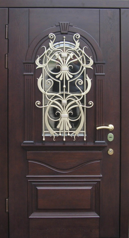 Морозостойкая дверь в широкий проем с глухим полотном стеклом и ковкой №30