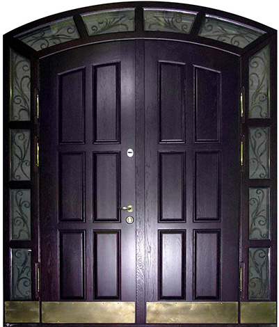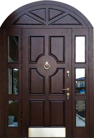 Дверь входная со стеклом в частный дом №382 сочетает массивность металла и изящество натурального дерева, создавая надежный и одновременно представительный парадный вход. Каркас и полотно выполнены из стальной профильной трубы с листом металла толщиной 2 мм и усилены ребрами жесткости, что обеспечивает долговечность и прочность конструкции. Облицовка массивом дерева придает двери благородный внешний вид, устойчивый к царапинам и воздействию времени, а также гармонично вписывается в архитектуру частного дома или коттеджа. Вставка из стекла делает интерьер светлее, подчеркивает индивидуальность фасада и визуально облегчает крупное полотно. Два контура уплотнителей защищают от сквозняков и влаги, а встроенные блокираторы повышают надежность. Такая дверь становится не просто функциональным элементом, а настоящим украшением высокого входа. Высокая входная дверь со стеклом в частный дом №15 от производителя: быстрое изготовление и монтаж в Красноармейске, индивидуальные размеры, широкий выбор материалов и фурнитуры, официальная гарантия до 10 лет.