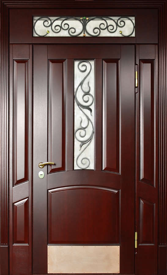 Красивая шпонированная дверь с надежной фурнитурой и ковкой "лоза" №33 идеально дополнит интерьер вашего частного дома или коттеджа. Внешняя и внутренняя отделка выполнены из натурального дерева, что придает двери элегантность и стиль. Профильная труба 50х25 мм используется для каркаса и полотна, а лист металла толщиной 2 мм и ребра жесткости из профильных труб 40х25 мм обеспечивают прочность и долговечность. Несмотря на отсутствие терморазрыва, дверь гарантирует надежную защиту и теплоизоляцию благодаря двум контурам уплотнения. Элементы ковки "лоза" придают двери особое очарование, сочетая практичность с эстетикой. Эта дверь — идеальный выбор для тех, кто ценит стиль, качество и безопасность. Красивая шпонированная дверь с надежной фурнитурой и ковкой "лоза" №33 от производителя: быстрое изготовление и монтаж в Красноармейске, индивидуальные размеры, широкий выбор материалов и фурнитуры, официальная гарантия до 10 лет.